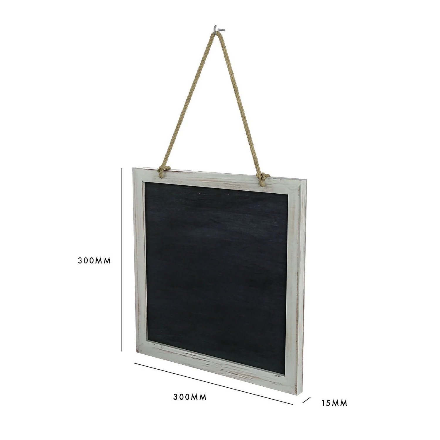 The Kids Chalkboard features a 300x300mm frame with ample drawing and writing space. The white paint finish and stylish hanging rope combine for an on-trend and fun design that can be easily hung anywhere in the home. Use in the kids play area or bedroom for drawing and encourage their creativity. Alternatively, use in the kitchen or living room or home entryway for shopping lists, reminders or home greeting messages.